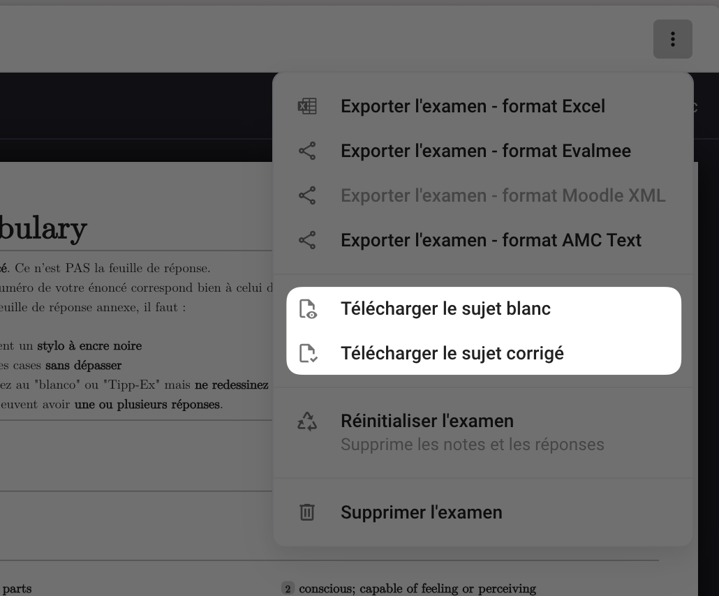 Accédez aux options de téléchargement en haut à droit en cliquant sur ⁝ :