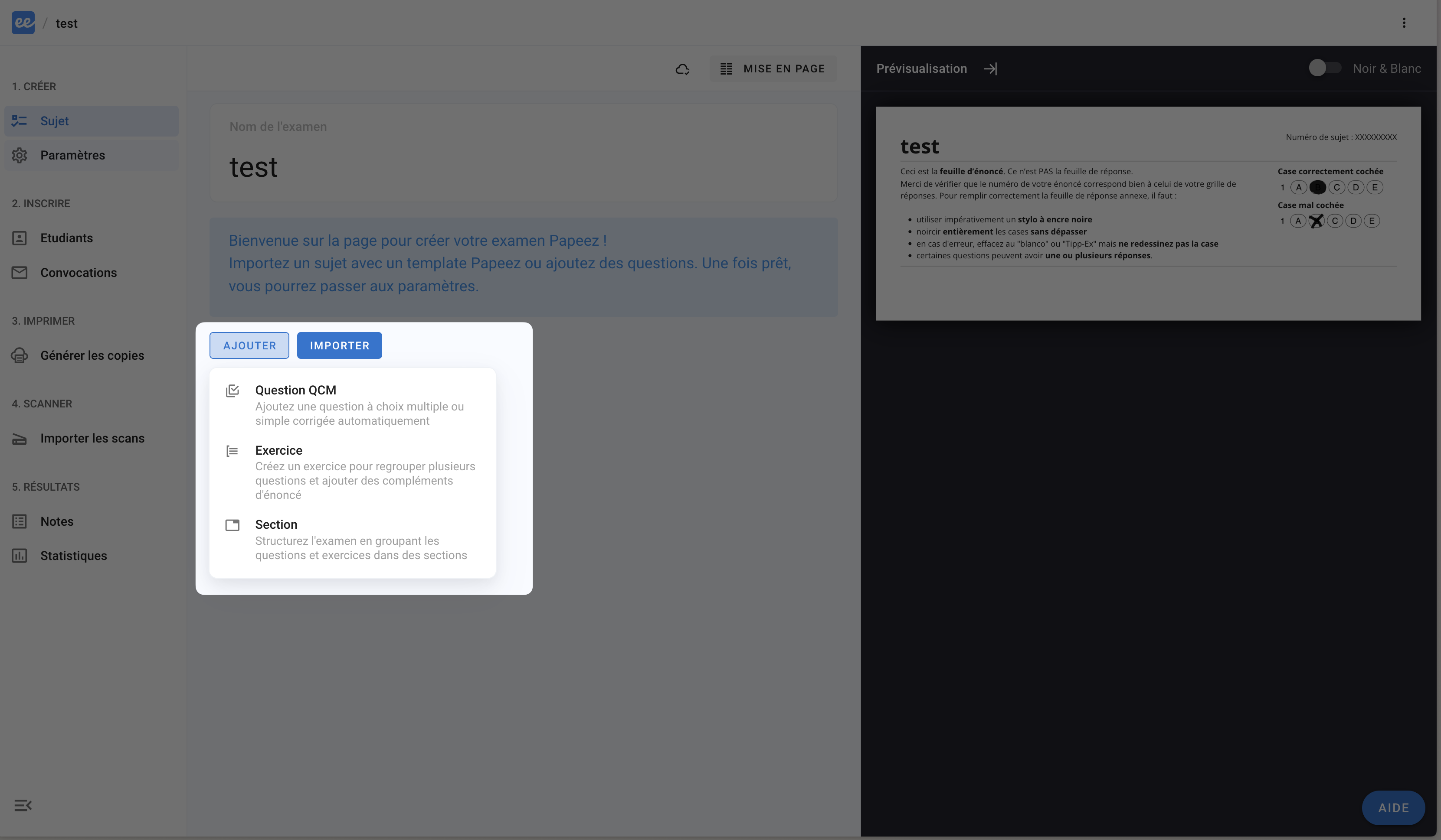 💡 Evidemment, vous pouvez créer un sujet d’examen sans exercices et/ou sans sections.